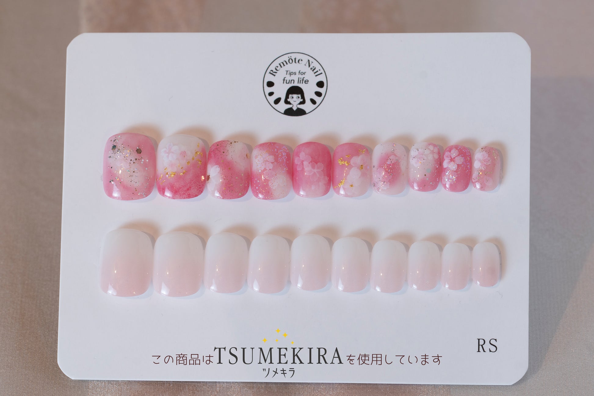 Created using Tsumekira sakura nail stickers, soft gradients and delicate shimmer capture the beauty of spring.